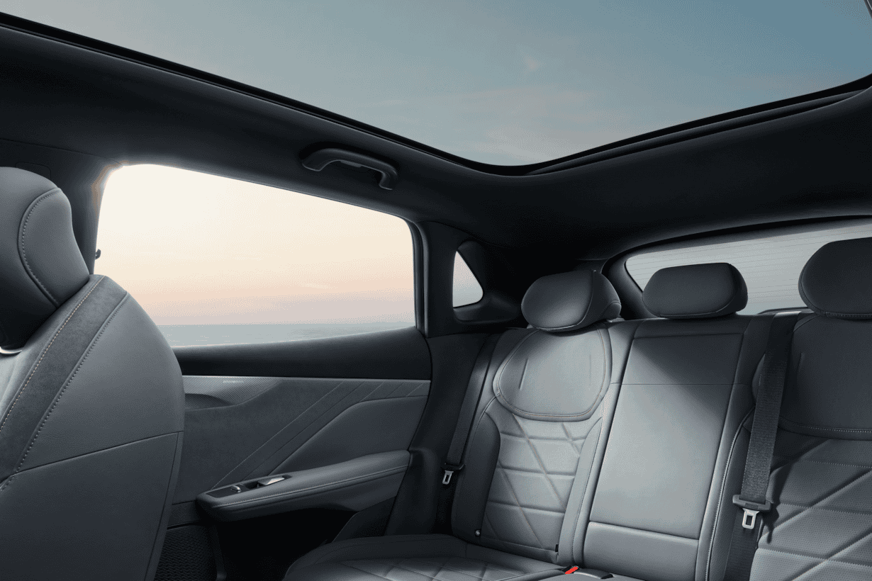 Deepal S05 postavlja nove standarde udobja. 2880 mm medosne razdalje zagotavlja izjemno veliko prostora za noge. Kraljičin sedež (Queen’s Seat) z električnim naslonom za noge sopotniku omogoča maksimalno udobje in vsako potovanje spremeni v pravo razkošje. Zaradi ogrevanih in prezračevanih sprednjih sedežev je Deepal S05 popoln spremljevalec za vsak letni čas. 1,9 m² veliko panoramsko stekleno streho je mogoče električno zatemniti, sistem Hi-Fi s 14 zvočniki pa zagotavlja edinstveno zvočno izkušnjo.